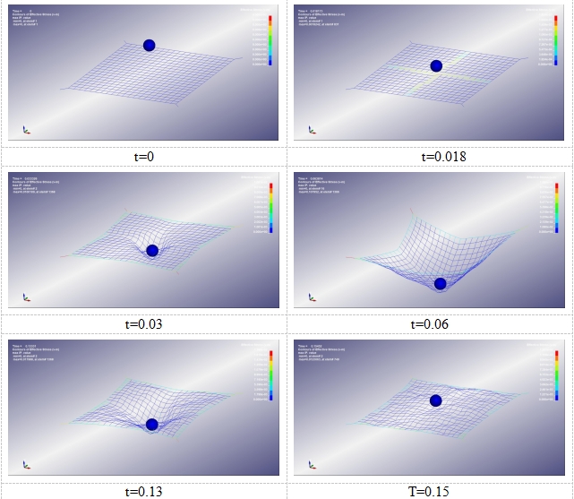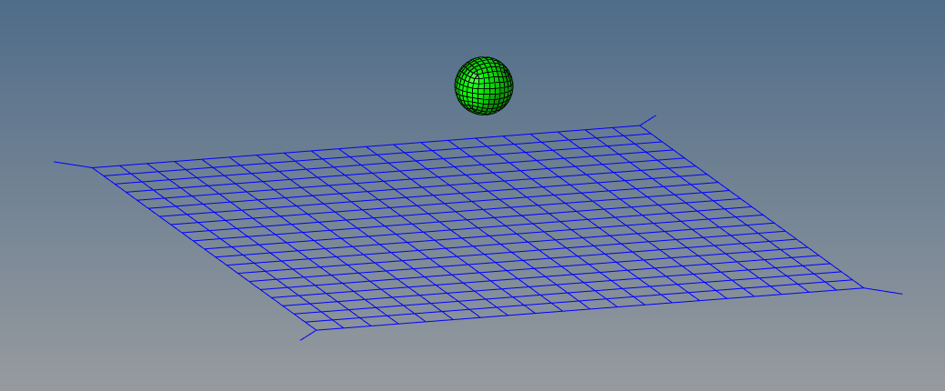本案例将落石等物体简化为小球,小球直径为100mm,质量为12kg,以初速度10m/s的速度,跌落入网绳结构,模拟网绳结构在受到冲击能量后,网体吸收能量再将小球弹起的整个过程。