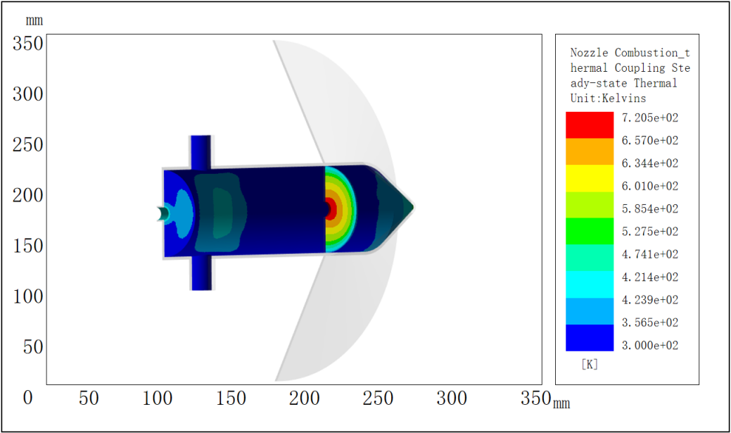 温度场求解:计算得到金属燃烧室在真实热载荷下的三维温度分布,精准定位过热风险区域。