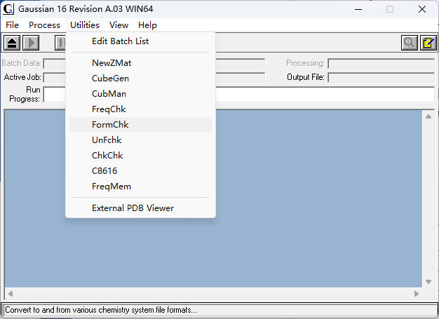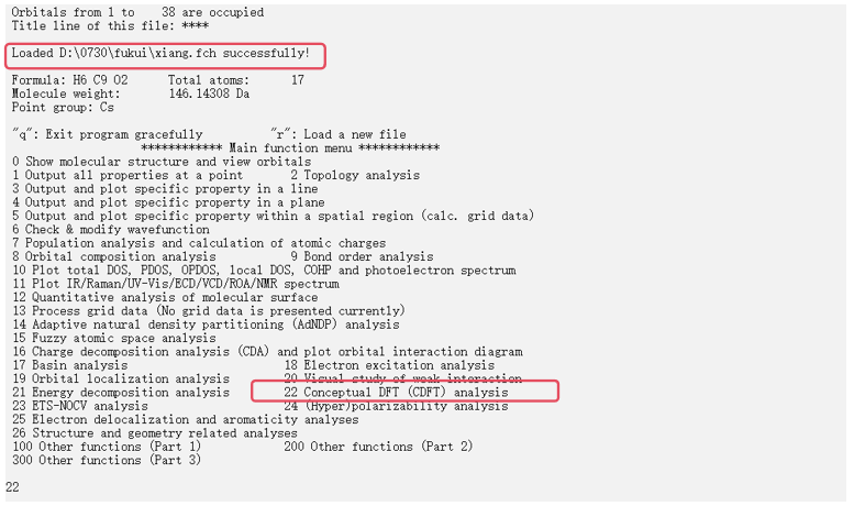 优化后的分子结构能够准确反映香豆素分子的稳定状态,此外我们还需要计算分子的N+1和N-1态结构(对应于电荷和自旋多重度分别为-1,2和1,2的状态)。计算完成后,Gaussian16会生成后缀为.chk的文件。为了使用Multiwfn进行进一步的分析,需要将这些.chk文件转换为Multiwfn支持的.fch格式文件(如图2所示)。在Linux环境下,可以使用formchk命令进行转换,生成的文件名依次为xiang.fch、xiang+1.fch和xiang-1.fch。