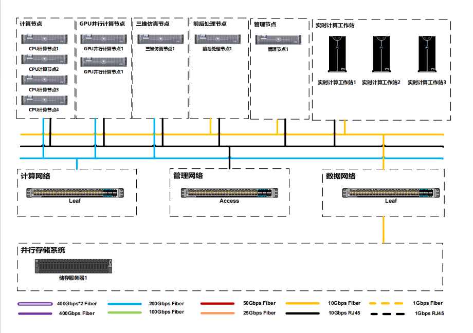 需构建多元化的计算资源池。针对生命科学中蛋白质折叠模拟、气象环境领域的全球气候模型运算等对计算精度和并行处理能力要求极高的任务,配备大规模异构计算集群,集成高性能 CPUGPU、FPGA 等计算单元。以材料学的分子动力学模拟为例 通过 GPU 加速,可大幅缩短计算分子间相互作用和运动轨迹的时间,加速新材料的研发进程。同时,随着数据量的爆炸式增长,要搭建高带宽低延迟的存储系统,采用分布式存储架构,结合固态硬盘(SSD)和大容量磁盘阵列(RAID),实现冷热数据分层存储,既能满足科研人员对高频访问数据的快速读取需求,又能有效降低存储成本。
