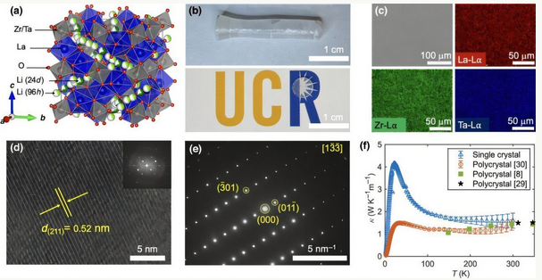 LLZTO晶体的结构和热导率。图片来源:《PRX 能源》